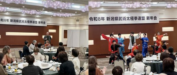 会長、理事長の挨拶の後、ジュニアチームの演武、有志の飛び入り、二胡の演奏、役員によるビンゴ大会などで盛りあがりました。