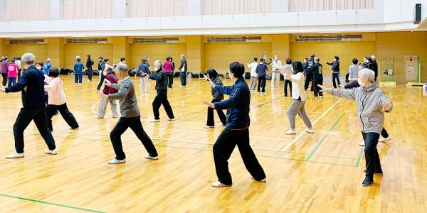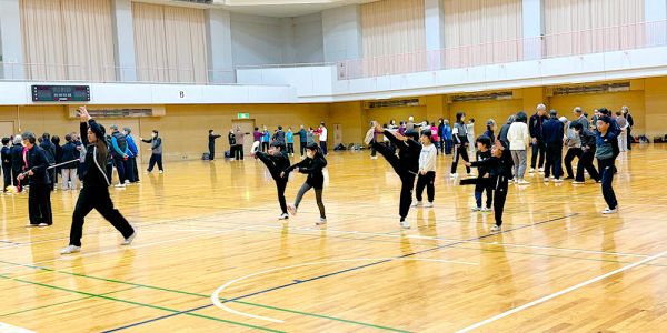 県内各地より集まった総勢169名の24式太極拳からスタート。各種目に分かれての講習会、最後は飛び入り参加オッケーの扇の集団演武、ジュニアや全国大会出場の選手の演舞が披露され、久しぶりの盛況なイベントとなりました。